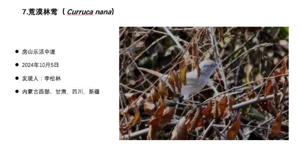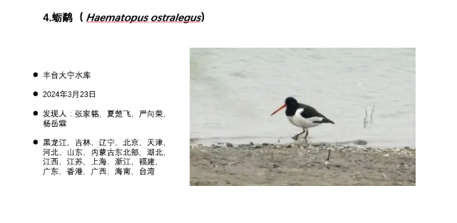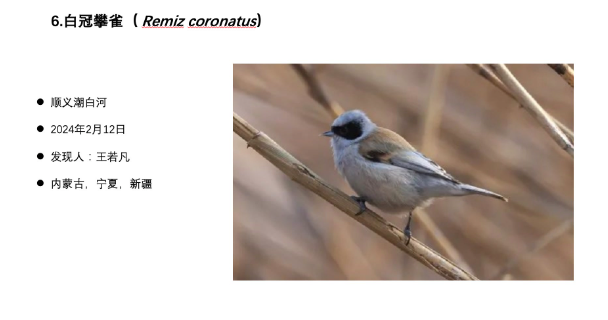 2025年名录新增加的8种野生动物全部为鸟类,其中,栗树鸭、黑海番鸭、蛎鹬、青藏沙鸻、白冠攀雀等5种鸟类均于河边或水库发现。荒漠林莺、棕胸蓝姬鹟、中华长尾雀等3种鸟类,经市园林绿化局组织专家鉴定后确认为北京新增加物种。