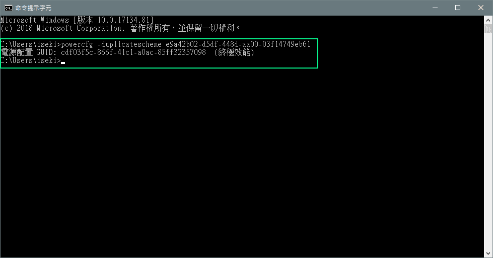 powercfg -duplicatescheme e9a42b02-d5df-448d-aa00-03f14749eb61