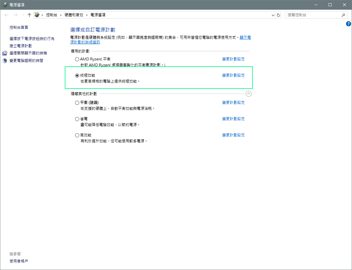 終極模式有一些特點,HDD或SSD不會睡眠、javascrip定時器最高、沒有休眠和睡眠、CPU最大化速度,終極模式也是可以在電源計畫中刪除歐~
