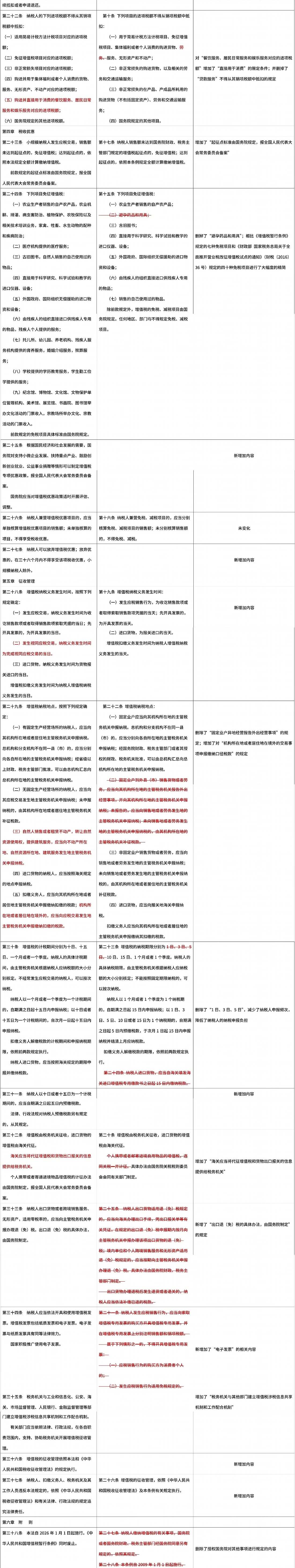 附表:新增值税法和增值税暂行条例对比表
