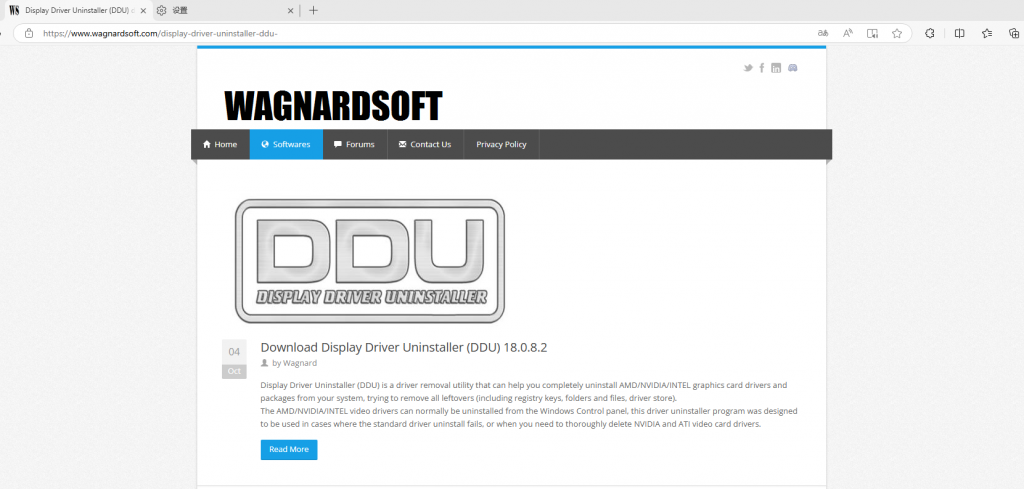 (https://www.wagnardsoft.com/display-driver-uninstaller-ddu-)下载并安装最新版本DDU(Display Driver Uninstaller)