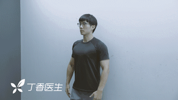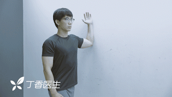 也可以同时牵伸双侧和颈部,背靠墙,双上肢及头部均贴住墙: