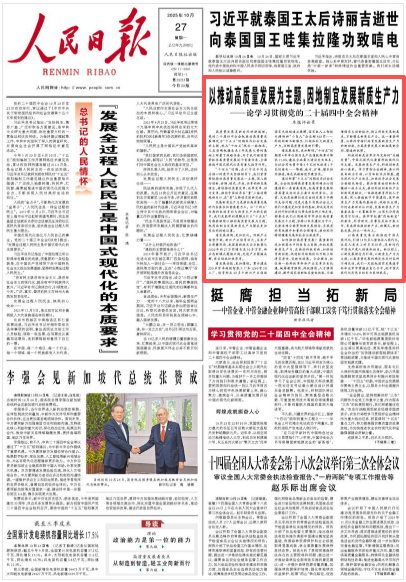 高质量发展是新时代的硬道理。党的二十届四中全会把推动高质量发展确定为“十五五”时期经济社会发展的主题,既与“十四五”规划一脉相承,又在准确把握未来5年发展大势的基础上部署了战略任务,对于我们继续紧紧抓住高质量发展这个首要任务、全面推进中国式现代化具有重大指导作用。发展新质生产力是推动高质量发展的内在要求和重要着力点。从“十四五”时期积极培育壮大新质生产力的实践中,我们更能深刻理解为什么“十五五”时期要继续以推动高质量发展为主题,把因地制宜发展新质生产力摆在更加突出的战略位置。【全文】