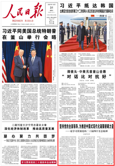 坚持和加强党的全面领导是推进中国式现代化的根本保证。党的二十届四中全会提出,坚持以党的自我革命引领社会革命,持之以恒推进全面从严治党,增强党的政治领导力、思想引领力、群众组织力、社会号召力,提高党领导经济社会发展能力和水平,为推进中国式现代化凝聚磅礴力量。【全文】