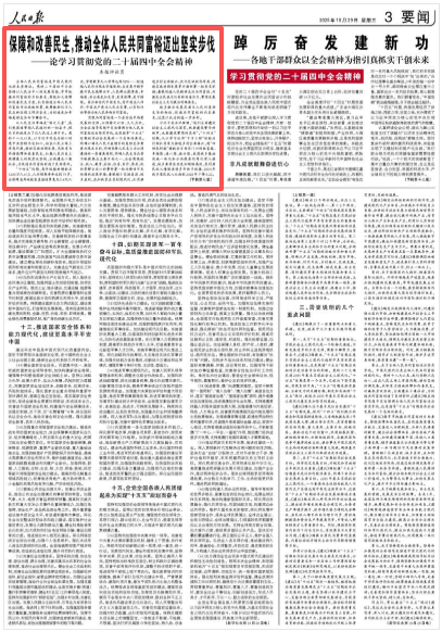 全体人民共同富裕是中国式现代化的本质特征。党的二十届四中全会坚持以人民为中心的发展思想,牢牢把握共同富裕的目标要求,围绕加大保障和改善民生力度、扎实推进全体人民共同富裕作出战略部署,鼓舞激励亿万人民在新征程上踔厉奋发,为创造更加幸福美好生活而不懈奋斗。【全文】