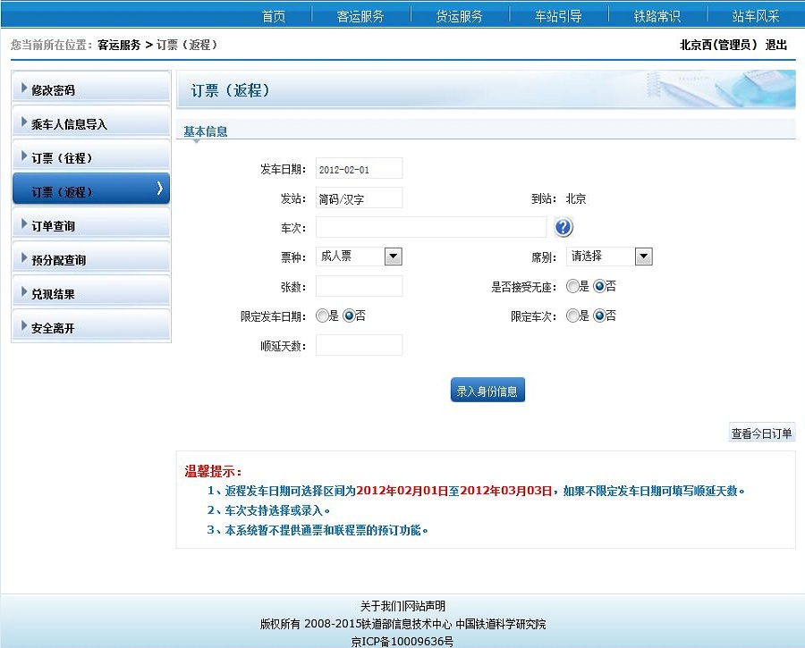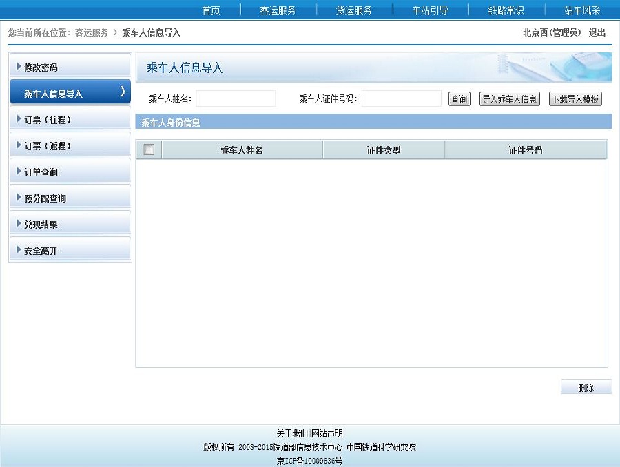 管理员使用铁路部门颁发的授权证书中的用户名和密码登录网站。