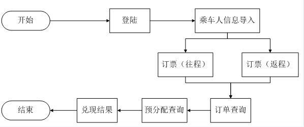 用户登录系统后,点击订票(往程),进入订票(往程)界面,即可完成往程票的提交操作。