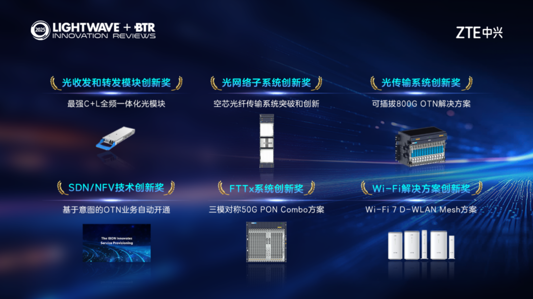 中兴通讯获2025 Lightwave + BTR全球光通信多项创新大奖,引领光网络创新发展