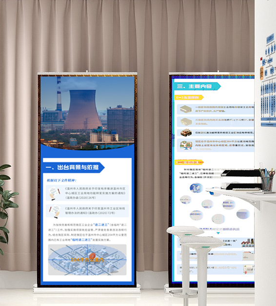 墙面主要作为制度宣传区域,可以张贴如专区logo、标语、专区管理制度等材料,或者作为专区特色宣传区域张贴部分带有本地特色的政策文件。有条件的确可以安装显示屏播放政策图解、视频解读等政策宣传信息。具体见图5。