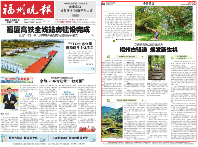2021年,由福建画报社牵头编写的《福建古驿道》一书,填补了我省古驿道调查记录的空白。2022年,福州市政协文化文史和学习委开展福州古驿道专题协商工作,今年在此基础上编纂《福州古驿道史话》,目前已形成初稿。