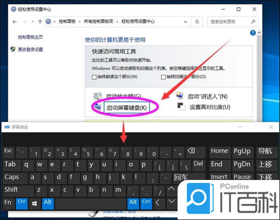 2. 然后在“轻松使用设置中心”窗口里面,点击“启动屏幕键盘”选项即可。