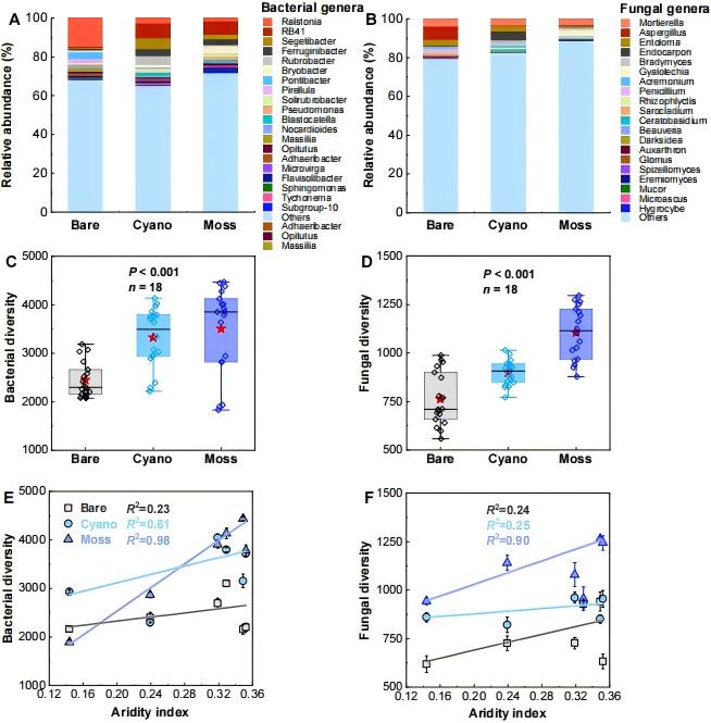 该研究得到中国科学院“西部之光”西部引进人才计划(No. 2019)、国家自然科学基金(No. 42477359)、中国—中亚人类与环境“一带一路”联合实验室/文化遗产研究与保护技术教育部重点实验室青年开放课题(No. 2024KGFR10)的资助。南京林业大学冯有智教授、美国北亚利桑那大学Matthew A. Bowker教授、西班牙塞维利亚自然资源与农业生物研究所Manuel Delgado-Baquerizo研究员参与研究并为论文共同作者。