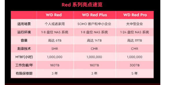 如果你是使用 HDD 阵列或是 NAS 存储的用户,那么西部数据 WD Red Plus HDD 具备处理中小型企业 NAS 环境以及个人用户不断增加的工作负载的能力,可以为多达 8 个盘位的 NAS 系统而打造和测试。