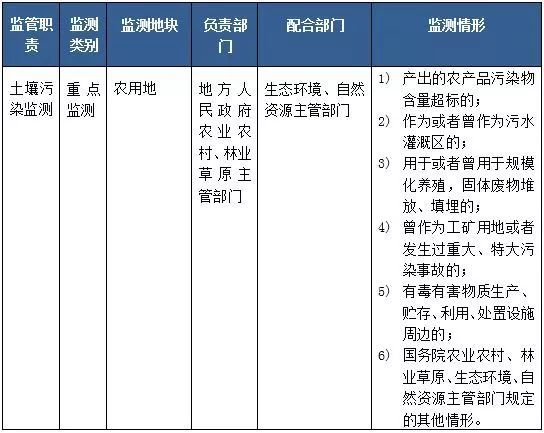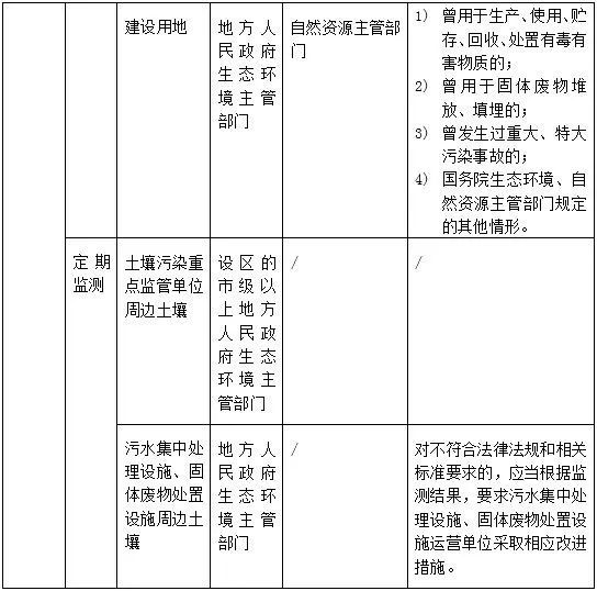 土壤环境监管部门对土壤污染的监测可分为重点监测和定期检测。其中,需要重点监测的地块包含符合特定情形的农用地和建设用地。
