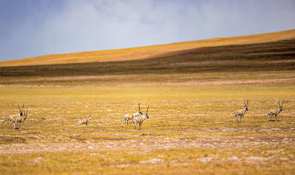 ▲羌塘国家级自然保护区那曲市双湖县区域内拍摄到的藏羚羊群。新华社记者关明辉摄