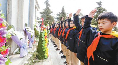 近日,江苏省连云港市师专一附小学生来到抗日山革命烈士陵园接受爱国主义教育和革命传统教育。樊晓姝摄(人民视觉)