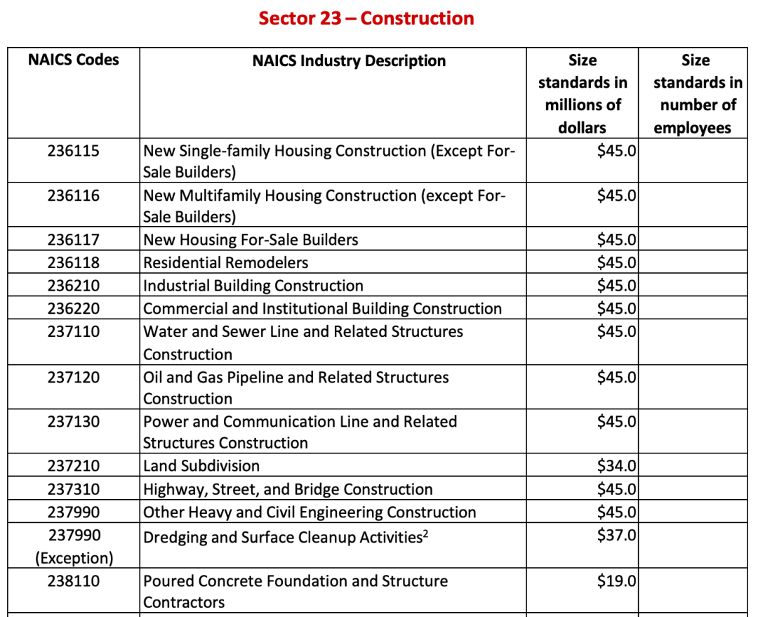 于是,2017年政府出台了北美行业分类体系(NAICS),将小企业划分为19个门类(2022年增加到了20个门类)、1036个细分行业。每个行业仅采用一个判定标准(526个行业基于营业收入,505个基于员工人数,仅有5个行业基于资产),是不是小企业,一查便知,可操作性强。