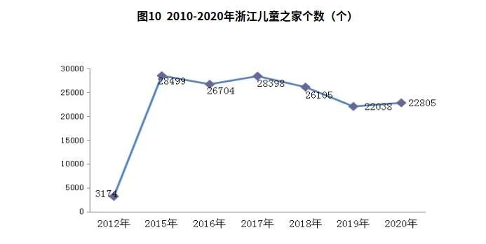 4.留守儿童关爱保护不断加大,儿童之家建设快速发展。全省组织开展“合力监护、相伴成长”专项行动,将所有农村留守儿童纳入有效监护范围。建立农村留守儿童信息档案,利用信息化手段加强动态管理,有3千名孤儿和6.1万多名困境儿童纳入政府保障体系,6.8万名农村留守儿童建立信息档案。农村留守儿童人数从2016年的11.7万下降到2020年的6.9万。积极推进村(社)儿童之家建设,出台《浙江省儿童之家建设三年计划》,召开推进儿童之家建设工作现场会。2020年,全省村(社区)建立儿童之家2.28万个,与2012年比增加1.96万个,增长6.2倍,达到《纲要》要求,26个加快发展县率先实现儿童之家服务全覆盖。