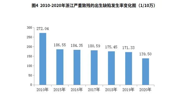 2.出生缺陷防治“十免”,健康素质得到提升。 全省建立以政府主导、政策推动、技术支撑的出生缺陷综合防控体系,发布全国首个出生缺陷综合防治地方标准。在全面实施“六免”政策基础上,新增实施免费产前筛查、产前诊断和新生儿先天性心脏病筛查项目,并将免费增补叶酸受益人群由农村扩大到符合条件的全部妇女,构建起覆盖城乡居民,涵盖婚前、孕前、孕期、新生儿期等阶段的出生缺陷预防体系,提供公平可及、优质普惠的出生缺陷预防服务。在全国率先启动出生缺陷救助项目,累计为600余位贫困缺陷患儿救助1000余万元。率先在全国将城乡全覆盖的“新生儿疾病筛查项目”列入新增基本公共卫生项目。2020年,产前筛查率、产前诊断率基本做到全覆盖;全省严重致残出生缺陷发生率逐年下降,由2010年272.0/10万下降到139.5 /10万。新生儿破伤风发病率高于1‰的县自2010年会后连续十年均为零,新生儿疾病筛覆盖率持续保持100%,新生儿的听力筛查和疾病筛查率分别为99.6%和100%,比2010年提高2.7和1.3个百分点,超过《规划》目标值9.6和10个百分点。低出生体重发生率3.99%,达到《规划》目标值。