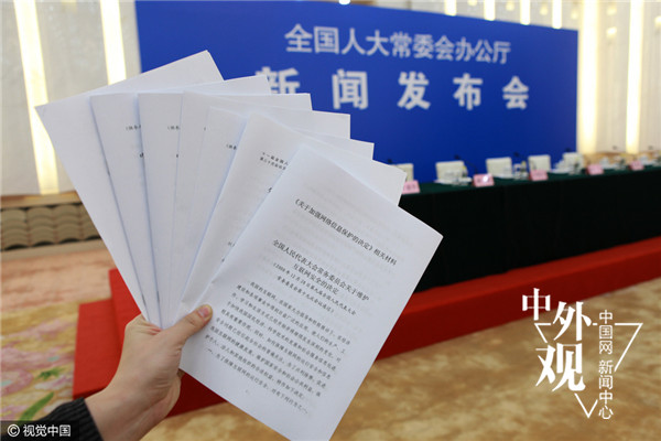 2012年12月28日,北京,全国人大就证券投资基金法修订草案、老年人权益保障法修订草案、劳动合同法修正案草案、关于加强网络信息保护的决定草案、关于授权国务院在广东省暂时调整部分法律规定的行政审批的决定草案等举行新闻发布会。视觉中国