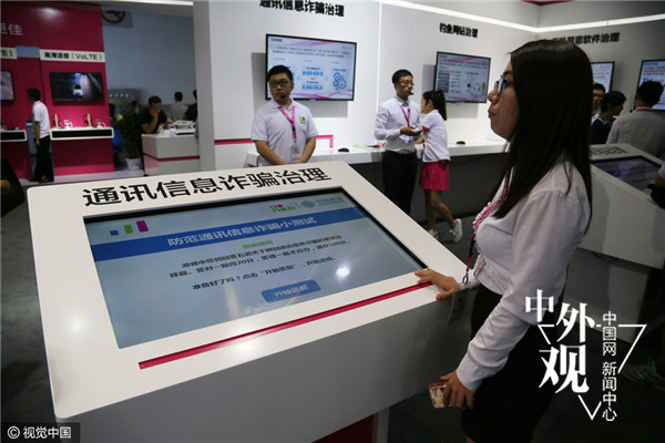 2016年9月20日,为期四天的2016中国国际信息通信展览会在北京开幕。该图为通讯信息诈骗治理平台。 视觉中国