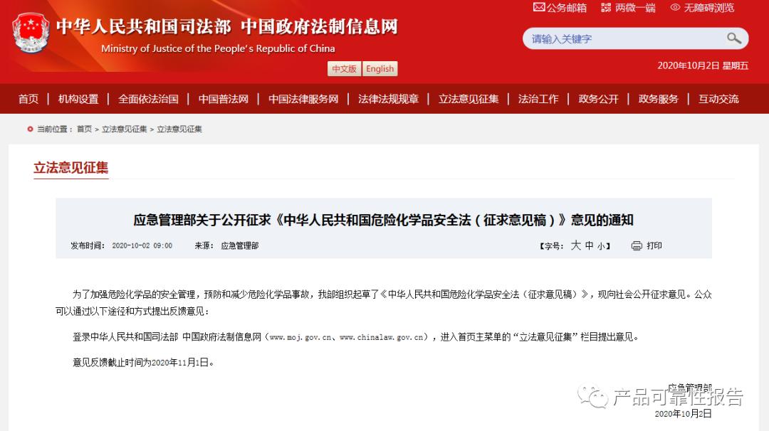 原标题:《明确市场监管部门职责分工 |《中华人民共和国危险化学品安全法》开始征求意见》