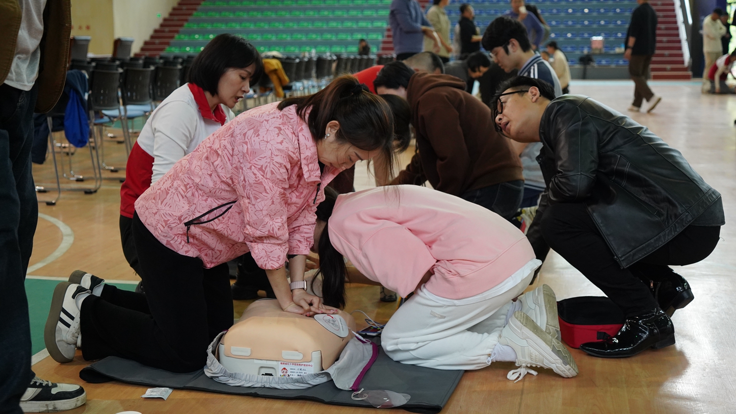 在实践操作环节,培训师们将所有学员分成多个小组,让大家对心肺复苏的按压姿势、频率、深度和创伤止血、包扎等反复进行实操练习,并以“搭档模特”(一人扮演“患者”,另一人则扮演“救护员”)的形式,轮流利用绷带和三角巾进行指定身体部位创伤救护的模拟演练;随后对每组“搭档模特”的技术实操进行纠错讲评,使得学员们更加熟练地掌握伤口包扎、骨折固定等应急救护技巧。