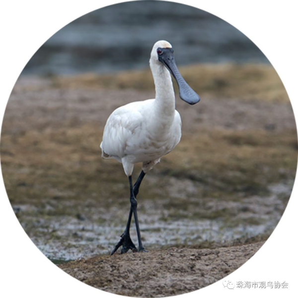 黑脸琵鹭全身羽毛白色,嘴部黑色,形状独特呈匙状,又像乐器琵琶,脸呈黑色,皮肤裸露,因而得名。