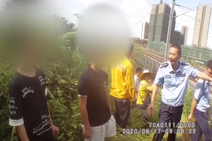 2.2020年7月17日,在福建省厦门市,铁路民警在巡查时发现3名青年站在铁轨中央摆拍照片,一列正在启动的货物列车紧急制动停车。