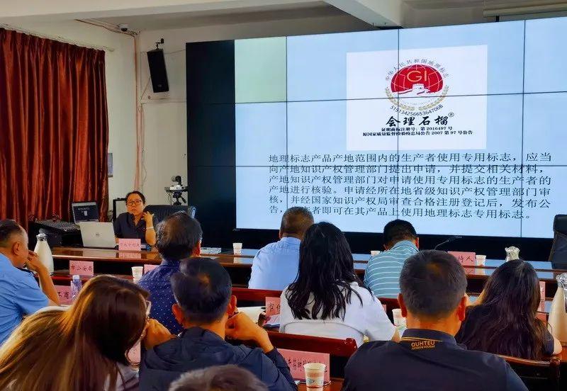会理市法院行政庭庭长彭继夏结合《地理标志产品保护办法》及相关典型案例,从专业的角度为参会人员讲解地理标志产品的范围、申报流程及成果转化与保护,指出运用地理标志发挥产品竞争力的技巧,鹿厂法庭干警向参会人员发放精心准备的“会理石榴”地理标志司法保护特色宣传资料,参会各方对石榴产、供、销等方面遇到的地理标志司法保护等问题进行全方位交流。