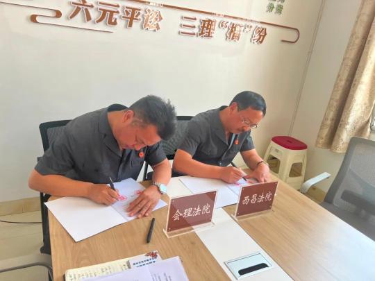 会理市法院积极筹备并推进知识产权行政司法协同保护框架协议签订工作,先后两次召集相关单位召开专题联席会议,在凉山州中级人民法院的指导和市委政法委的领导下拟定涵盖联席会议、诉源治理、诉调对接、司法确认等七个方面的《会理市地理标志(会理石榴)行政司法协同保护框架协议》,并于4月11日与市委政法委、市场监督管理局、公安局、司法局等七家单位联合签订,为全面构建知识产权“大保护”格局搭建平台。