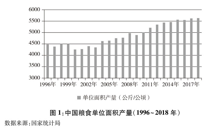 图1:中国粮食单位面积产量(1996~2018年)(新华社发)