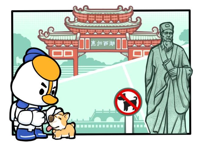 《惠州西湖风景名胜区保护条例》 第二十一条 除缉毒犬、搜救犬、导盲犬、扶助犬等工作犬外,禁止携带犬只进入设有禁入标识的惠州西湖风景名胜区区域。禁入区域范围由风景名胜区管理机构划定,并向社会公布。