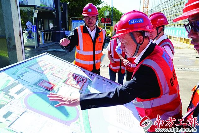 ▲ 雍建(右一)正在对项目工地临时办公室作规划说明 受访单位供图