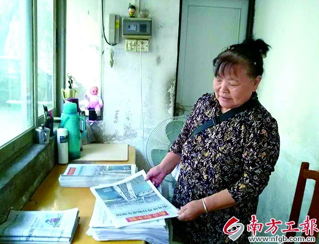 ▲ 在工作现场整理报纸的陈姨 王艳/摄