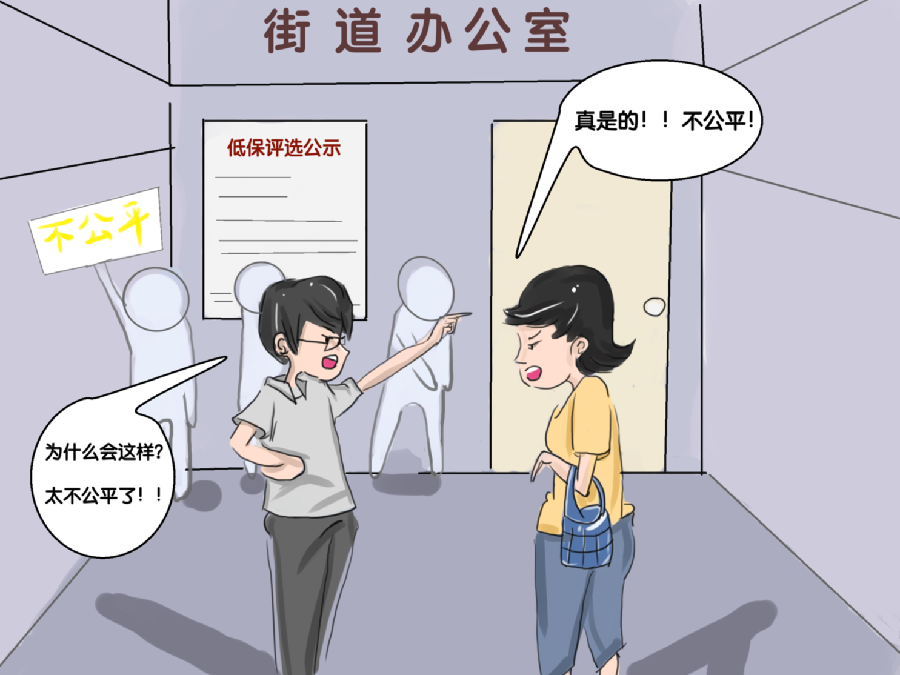在社区居委、村委会的办公室能看到这样的情景:进行低保民主评议时群众忐忑的心情呈现在阴沉的脸上,低保评审公示之后,乡镇、街道的办公室挤满了对评审结果不满的群众,吵得不可开交。他们的语气充斥着愤怒,脸上总是露出怀疑低保不公的神情。