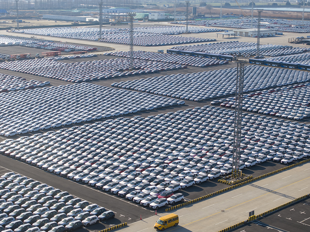 2024年1月24日,江苏太仓港,新能源汽车等待出口。