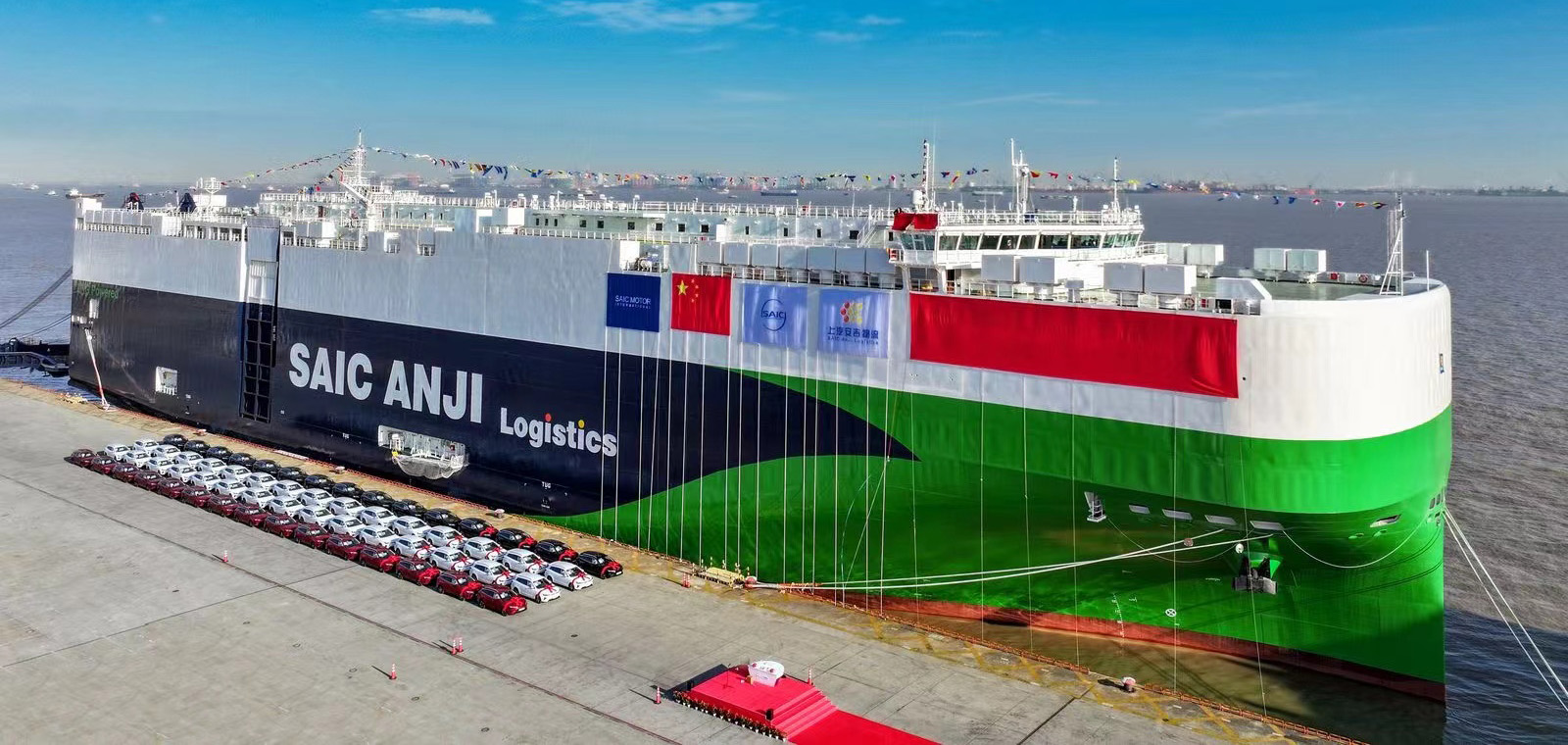 这艘由中国船舶集团建造的远洋汽车运输船“上汽安吉申诚”号有7600个车位,是全球现役装载量最大、国产化程度最高的清洁能源滚装船,首航将搭载数千辆中国自主品牌新车驶向欧洲,最终将停靠荷兰芙拉新港(Flushing)。