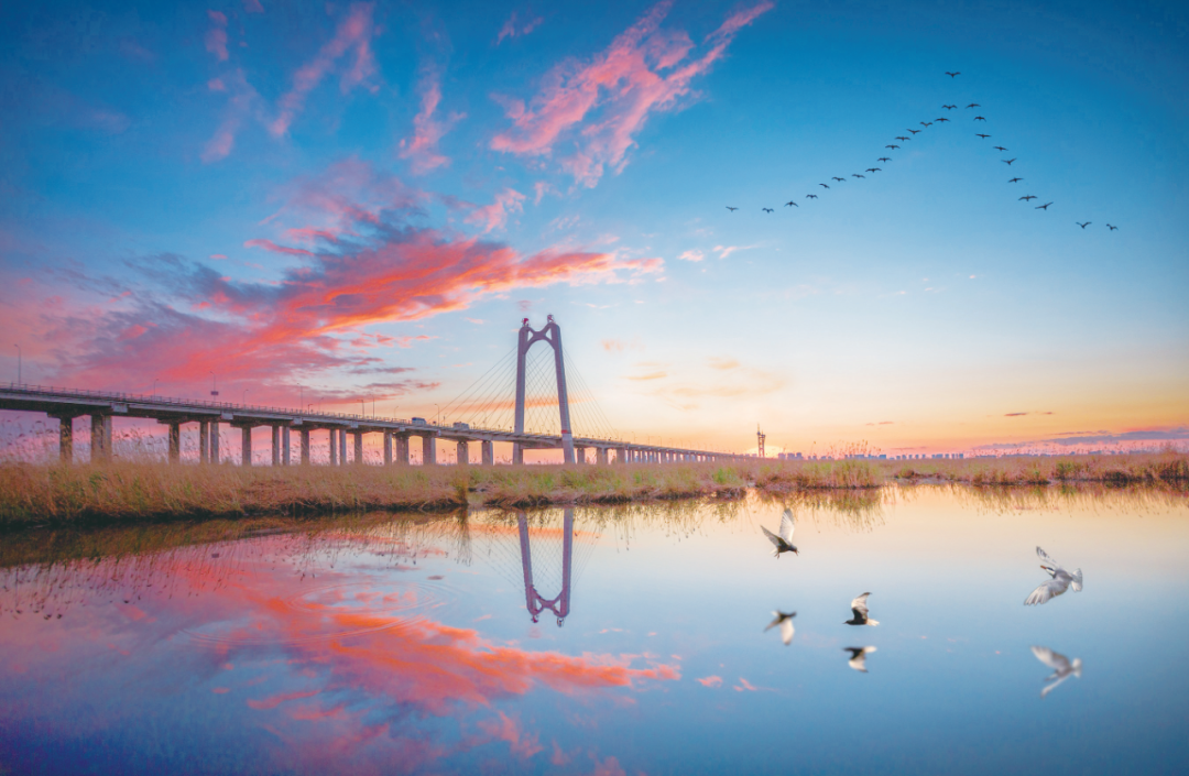 依托“一江居中、南北互动、两岸繁荣”的发展定位,哈尔滨市打造出万顷松江湿地、百里生态长廊的湿地景观带。珍稀濒危动物东方白鹳、中华秋沙鸭等在万顷湿地中繁衍生息,与人类和谐共生。