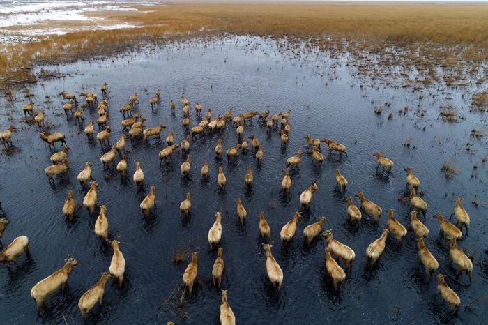 (江苏盐城大丰黄海湿地麋鹿自然保护区 来源:新华社)