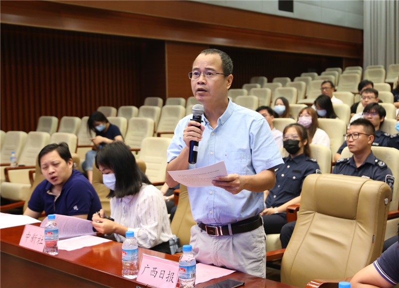 出席今天新闻发布会的领导有:市人大常委会副主任梁日春,市人大监察和法制委主任委员蒙森,市人大城建环保委副主任委员谢凯桐,市人大常委会法工委副主任李俊,市司法局副局长陈岚 ,市生态环境局副局长赵福。我是市人大常委会副秘书长刘榴,也是本次新闻发布会主持人。