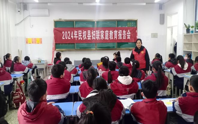 1月19日,民权县妇联组织巾帼志愿者在鲲鹏学校举办家庭教育报告会。邀请国家二级心理咨询师、家庭教育指导师王智慧为在座的学生上了一堂生动的家庭教育课。