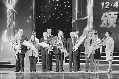 编者按 12月4日“法制宣传日”当晚,由全国普法办、司法部、中央电视台主办,本报参与合办的《法治的力量2010-12·4十年法治人物颁奖盛典》在央视1号演播大厅落下帷幕。根据“百人评审团”的投票结果,10位十年法治人物和4位十年法治人物特别贡献奖得主最终揭晓。这份10人的获奖者名单,不仅是对过去十年中国法治进程的回望与注解,更是对未来中国法治发展和社会进步的期待与承诺。
