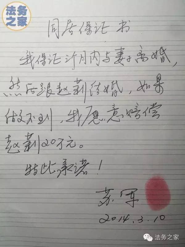2016年7月,忍无可忍的赵某拿着苏某所写的“同居保证书”向法院起诉,要求法院判令苏某支付20万元违约金。赵某认为“那份保证书其实是我和苏某之间的协议,苏某违约了就应该支付违约金,这也是他不讲信用应该付出的代价”。