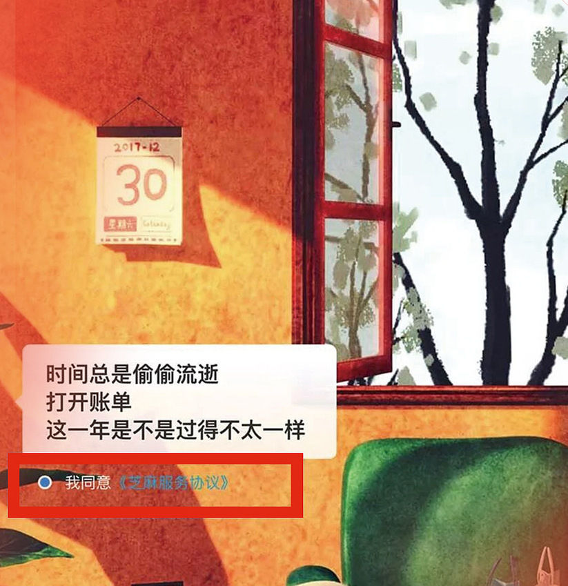 支付宝的年度账单中,「我同意《芝麻服务协议》」的字样也随之消失。
