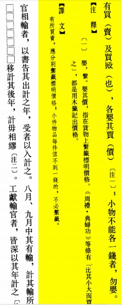 买卖的时候,应分别挂上价格标签标明价格,小件物品每件不到一钱的,不必悬挂标签。