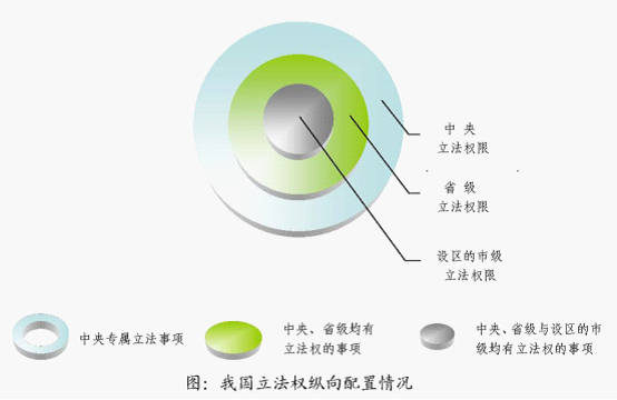 我国立法权纵向配置的一个重要特点是各级立法权限范围相互重叠。如图所示,中央立法机关立法权限最大,其范围覆盖了地方两级立法机关的立法权限;其次是省级地方立法权限,其范围覆盖了设区的市的立法权限。在这种立法体制下,如何正确理解和把握不同层级立法机关的职能定位,从而准确行使好各自的立法权,值得我们深入探讨。