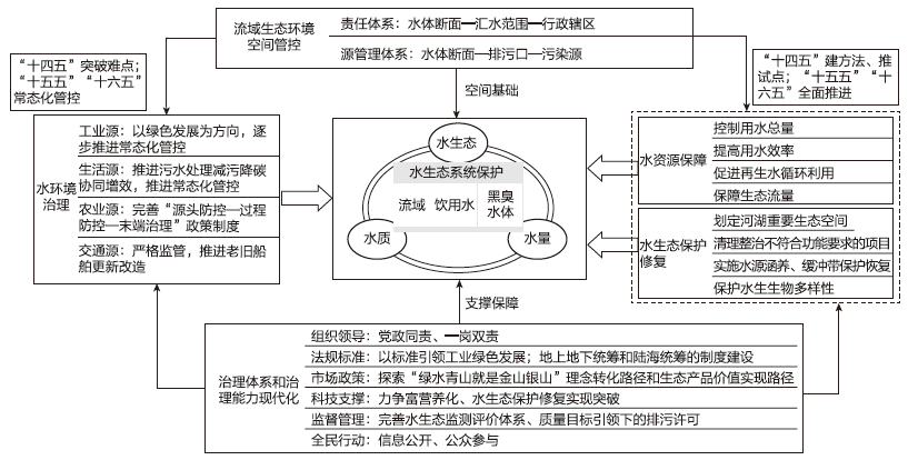 水是生命之源,是人类生存和发展之本。“十四五”时期是乘势而上、开启水生态环境保护新征程的五年,是向着“清水绿岸、鱼翔浅底”美好水生态环境愿景奋进的五年,具有不同以往的新形势和新要求,需要重新理解和审视面向美丽中国建设的新时代水生态环境保护内涵。新时代水生态环境保护工作既要衔接好“十三五”碧水保卫战成果及好经验好做法,又要锚定2035年美丽中国建设目标[],以习近平生态文明思想为根本遵循,坚持山水林田湖草沙冰系统治理,坚持精准、科学、依法治污,按照流域生态系统的整体性、系统性及其内在规律[]创新性地开展水生态环境保护,明确水生态环境保护战略路线,助力实现美丽中国。