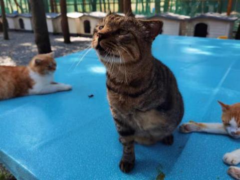 我们坐在流浪猫救助中心“糗糗庄园”的庭院里,这里的每一只猫几乎都有自己的故事。那只耳朵残缺的狸花猫高高地翘起尾巴,打了一个哈欠,并不知道自己已经成了话题的中心。在它旁边,一只漂亮的布偶猫在太阳下昏昏欲睡。