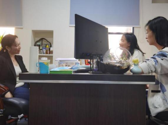 汪雯律师在宁嘉律师事务所接受《新记者》同学采访 戴思颜/摄